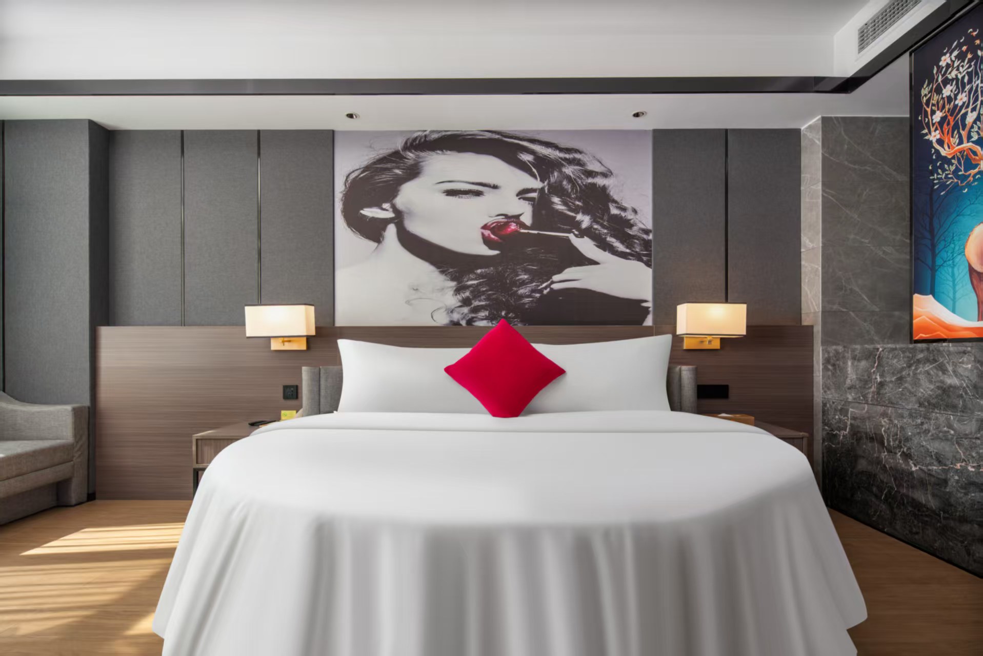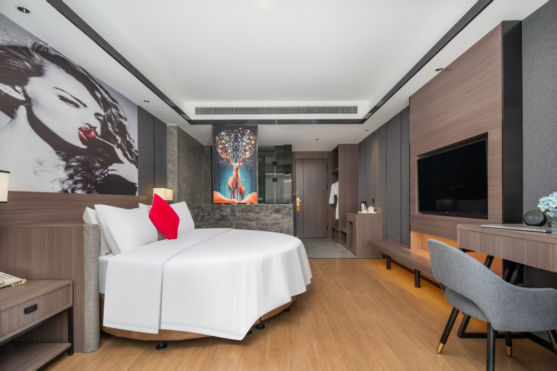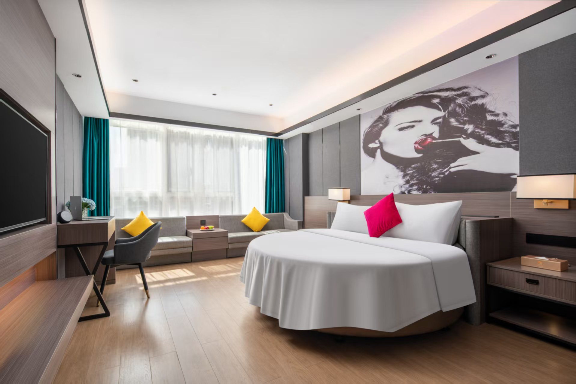 浪漫情侣圆床房(舒适安心+宽敞明亮+城市夜景)